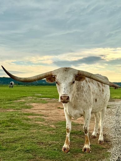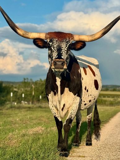 Thunder is 2.5 years old and he is the new stud Bull from W2 Ranch . His genetics are high in demand due to the thicker horns and blue coat. He is a great addition to The Sanctuary.